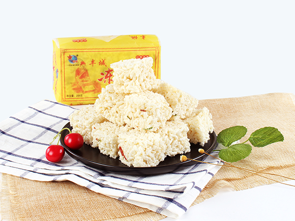 豐城市杜市星球凍米糖廠,是豐城食品生產(chǎn)中的地方傳統(tǒng)名產(chǎn)品。相傳已有兩百多年的生產(chǎn)歷史,以“江南小切,而出名。每年中秋一過,農(nóng)村家家戶戶把糯米飯涼干,炒成爆花米,用米糖拌粘,切成塊塊,待客解茶。這種糕點叫做“炒米糖”、“米花糖塊”。更講究者,用糯米飯做成凍米“干飯”,再用清茶油煎泡“干飯”,使“干飯,變成爆花米,再用飴糖粘結(jié),冷卻后用薄刀切成小塊,前后經(jīng)過半成...